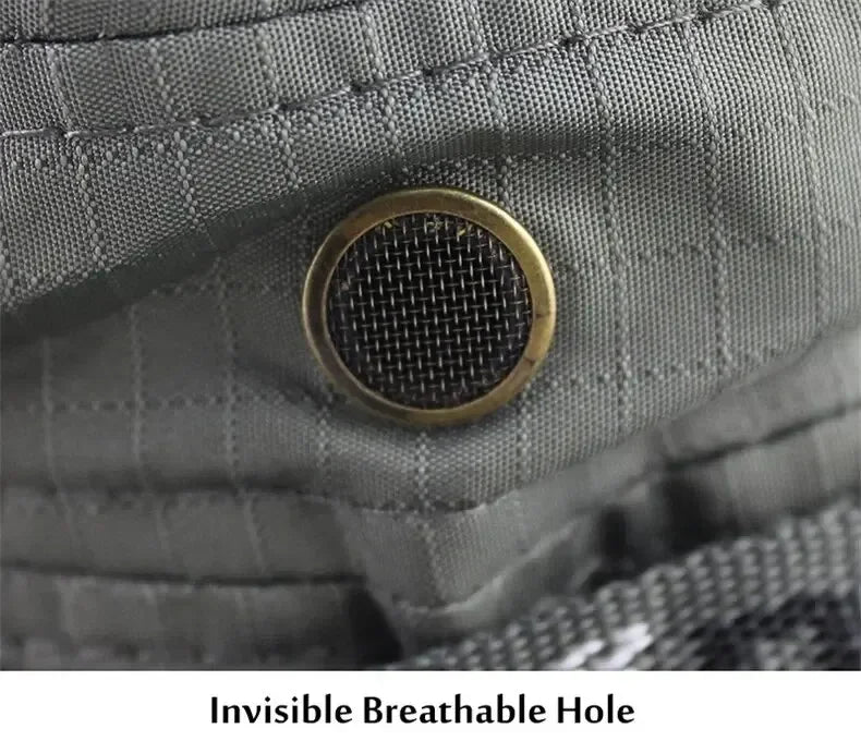 Découvrez le chapeau seau d'été pour hommes avec protection UV et large bord. Style Panama parfait pour safari, chasse, randonnée et pêche. Casquette de protection solaire en maille pour la plage.