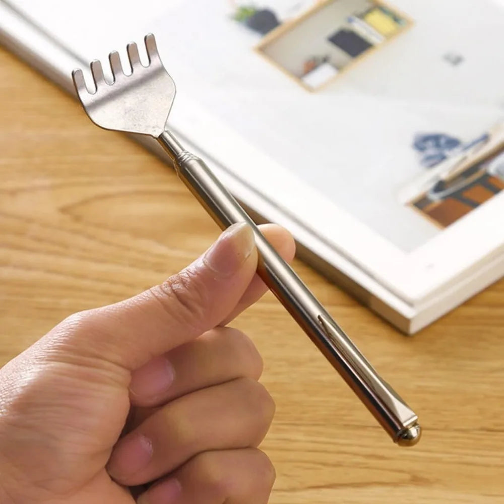 Découvrez le gratte-dos télescopique argenté en acier inoxydable, extensible et portable pour hommes et femmes. Cadeau pratique et original pour mères et hommes. Accessoire de bien-être indispensable.